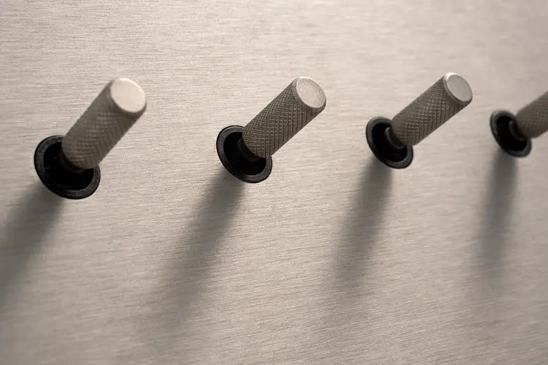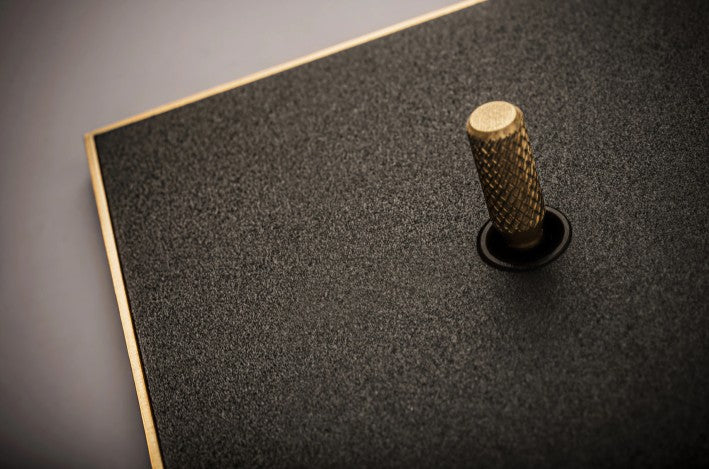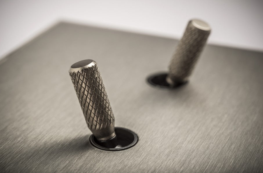 The Cockpit collection distills handmade finishes and distinctive toggle profiles into a bold, timeless expression. Its refined cone and knurled forms introduce a subtle vintage presence across a wide range of interiors.