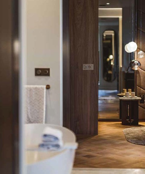 A curated palette of premium finishes allows you to mix tones, textures, and materials into a composition that reflects your vision. With more than fifty possible combinations—from crisp contrasts to subtle tonal pairings—you can create a switch or socket that feels uniquely your own.