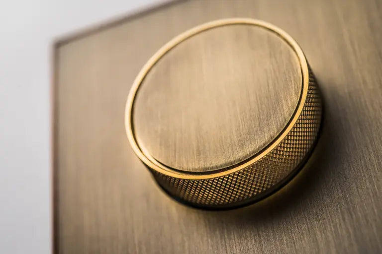 The Dimmer collection pairs contemporary vintage character with a precise, turn‑to‑set control. Offered in cone or knurled profiles, each piece delivers a satisfying tactile feel and a quiet sense of refinement.