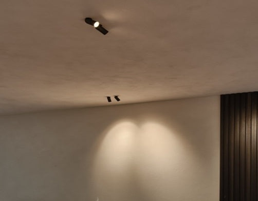 A modular indoor lighting system shaped with quiet geometry and interchangeable optics for architectural interiors