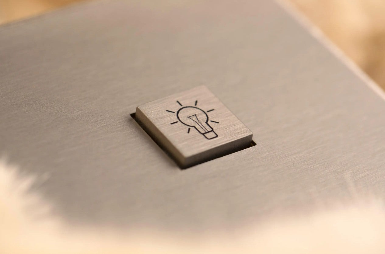 Engraving offers a refined way to personalize buttons and cover plates with text or symbols that become part of the material itself. As each surface is etched, the underlying tone is revealed, creating a subtle contrast that adds a crafted and enduring detail to any interior.